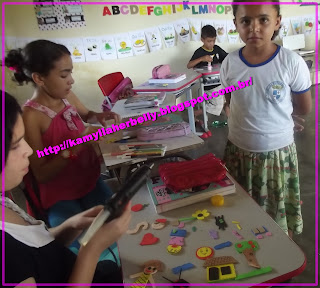 Depois, entreguei a cada criança uma sacolinha com livros para que lessem em casa e contasse a história na aula seguinte. Em seguida, cada um sentou na cadeira do conto, para assim contar uma história para os colegas.